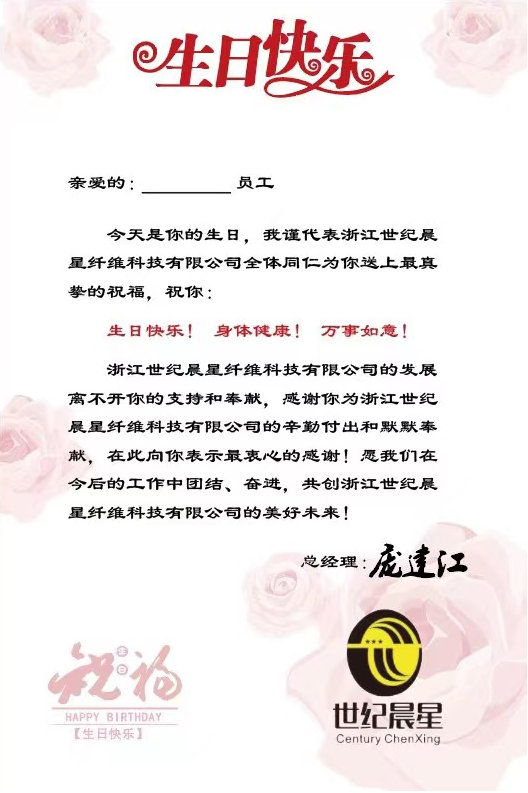 সেঞ্চুরি চেনক্সিং এন্টারপ্রাইজ সংস্কৃতির প্রচার করার জন্য, প্রতিটি কর্মচারী কোম্পানির উষ্ণতা এবং যত্ন অনুভব করেছেন এবং উর্ধ্বতন নেতারা ব্যক্তিগতভাবে তাদের জন্মদিনের জন্য জন্মদিনের আশীর্বাদ এবং সুপারমার্কেট শপিং কার্ড পাঠিয়েছেন। এন্টারপ্রাইজগুলি কর্মীদের দীর্ঘমেয়াদী কাজের স্বীকৃতি এবং কৃতজ্ঞতা দিয়েছে এবং কর্মীদের জন্য কোম্পানির যত্নও প্রকাশ করেছে। চমৎকার মানবিক ব্যবস্থাপনা গঠন, এন্টারপ্রাইজে কর্মীদের আস্থার প্রচার এবং অভিন্ন স্বাস্থ্যকর উন্নয়নের উন্নয়নের প্রচার।